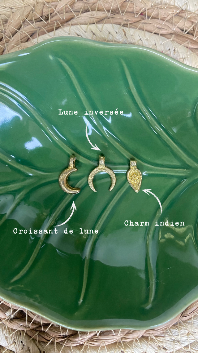 Un bracelet fin et délicat, orné d’une breloque en laiton au choix — croissant de lune, lune inversée ou charm indien.
