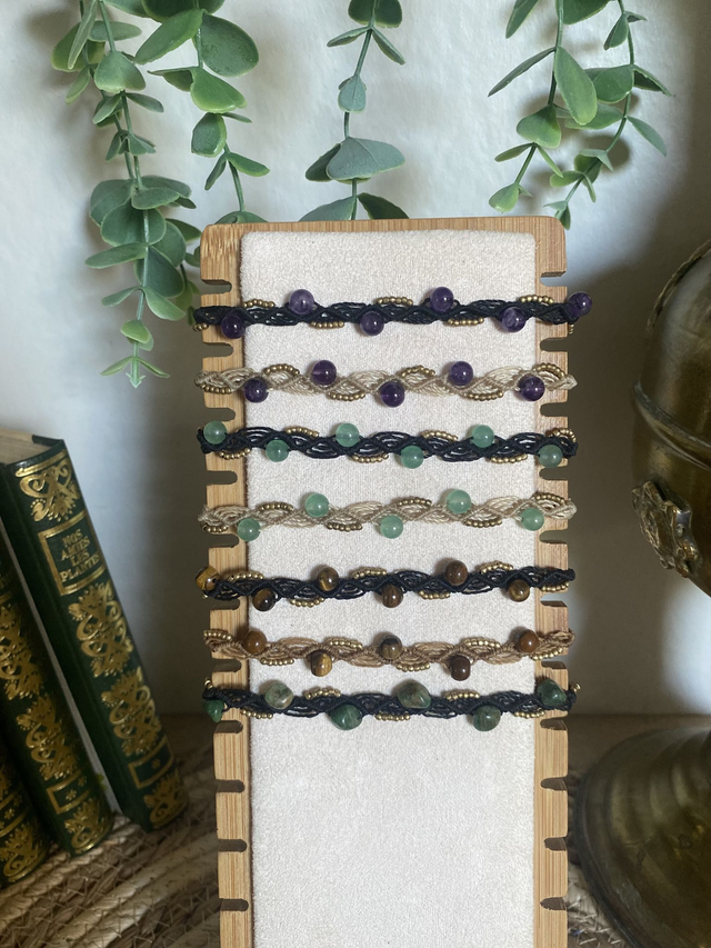 Bracelet en micro macramé et pierres naturelles de ton choix.