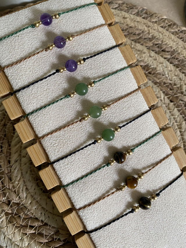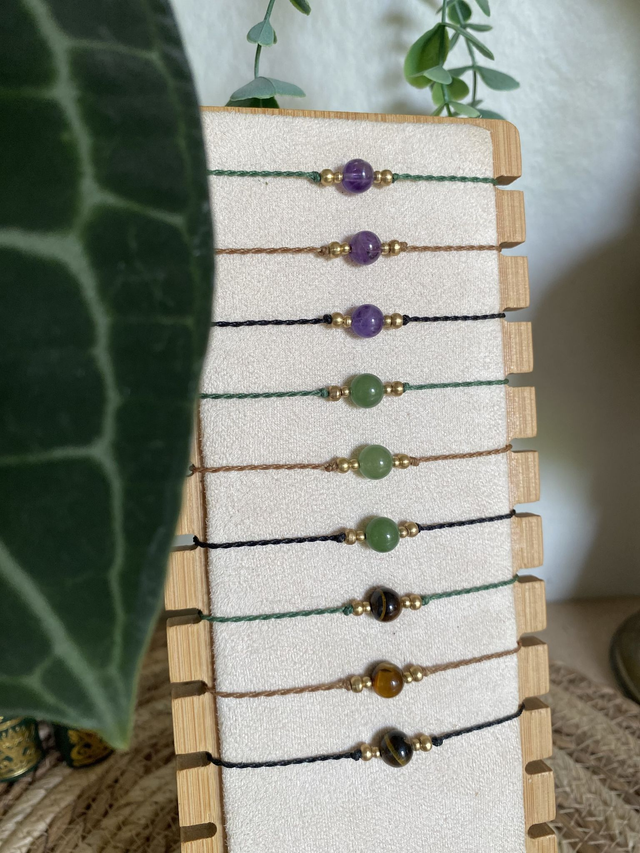 Idéal comme bracelet d’amitié, il est personnalisable : choisissez la pierre et la couleur du fil pour créer votre bijou unique.