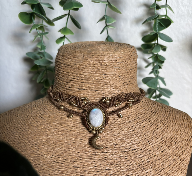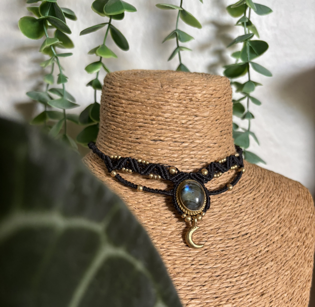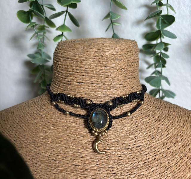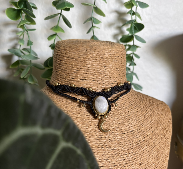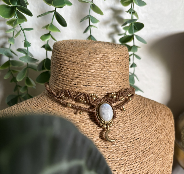 Trois colliers artisanaux créés pour la capsule d’hiver, inspirés de l’harmonie Soleil/Lune.