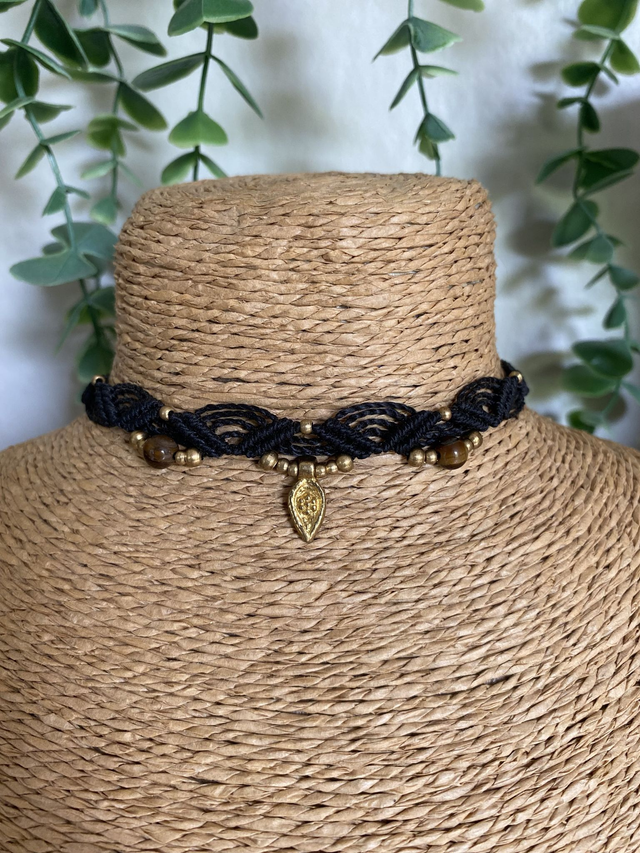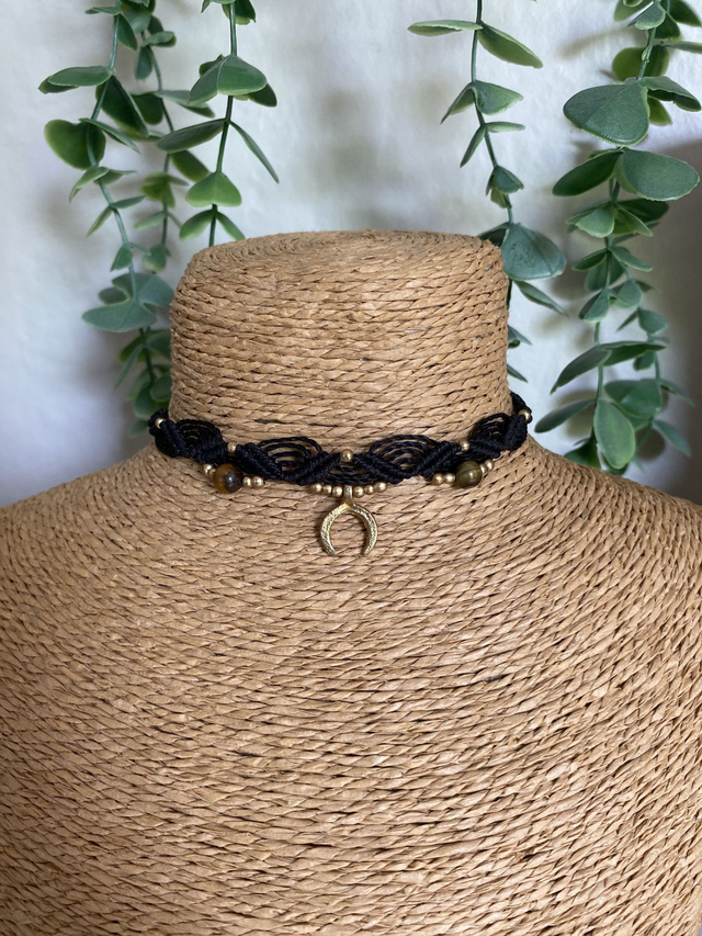 Un collier ras de cou artisanal tissé en micromacramé, à la fois délicat et intemporel.